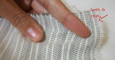 | Tecido com um pouco de elastano. Observe a posição da ourela. |
