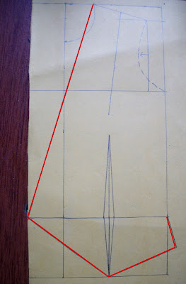 E para finalizar a frente do molde de colete, ligamos este ponto fora do molde até a linha que determina a cintura.