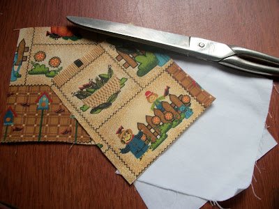 Corte dois quadrados de tecido, medindo 8 cm X 8 cm (essa medida já está contado a costura)