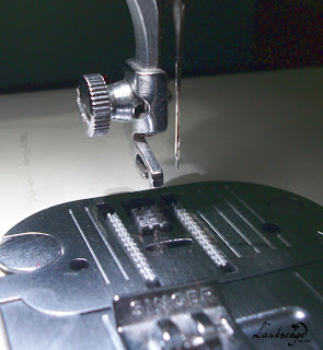 Esta sapatilha faz o ponto para a costura invisível.  A costura invisível normalmente é utilizada em bainhas. Até hoje eu só usei este recurso da minha máquina uma única vez. Eu achei a explicação do manual um pouco confusa e me atrapalhei um pouquinho até entender como tudo funcionava.  Por isso,  farei um SOS para falar exclusivamente desse ponto ;)