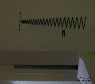 Agora a linha passará pela segunda pecinha de metal, que é a que se movimenta ao mexermos na máquina.