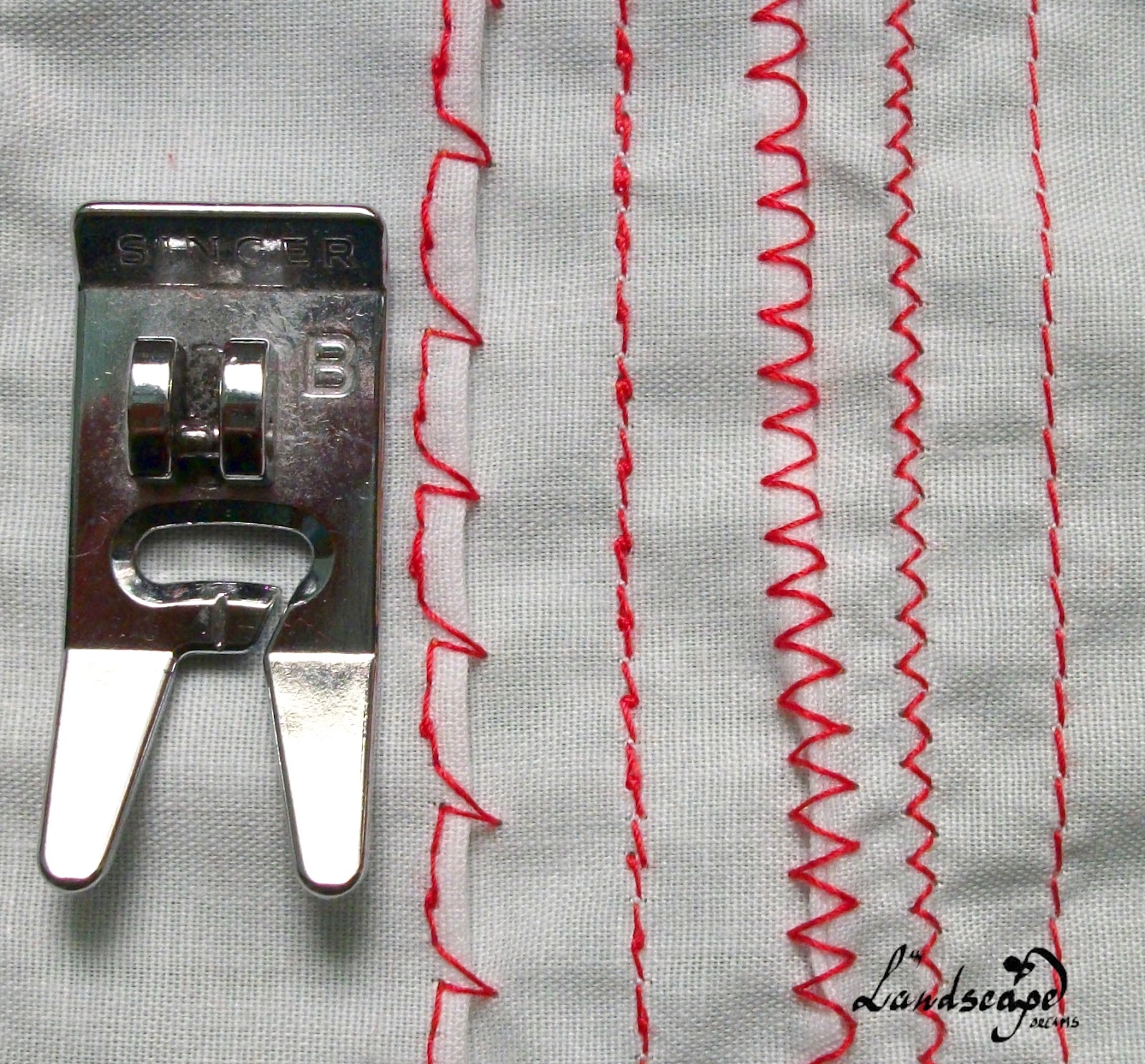 Primeiro, decidimos que ponto nós queremos usar.  Por exemplo, ponto zig-zag.  Depois do ponto escolhido, começamos a ajustar a máquina.