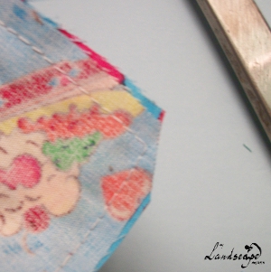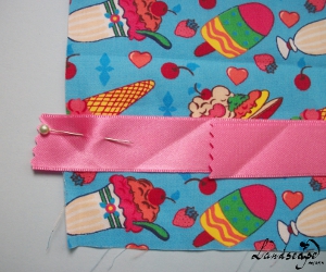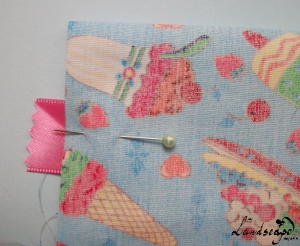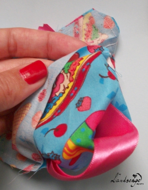 As fitas são colocadas na parte interna do retângulo de tecido.