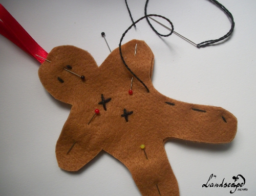 Eu cortei o feltro em forma de folha (duas folhas), bordei na máquina de costura os frisos da folha (algo que pode ser feito à mão com linha e agulha) em uma das folhas e costurei as laterais, não esquecendo de deixar um pequeno espaço sem costura. Depois, recheei a folha com acrilon e um pouco de catnip (opcional), e costurei o espaço em aberto na máquina de costura.