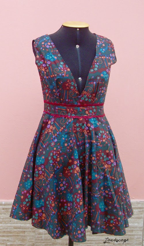 Para o primeiro post do ano, eu decidi falar um pouquinho da minha última costura de 2016: um vestido com um leve ar retrô e uma linda estampa de gatinhos. Este vestido se tornou uma das minhas peças favoritas por três motivos: pelo simpático tecido, pelo modelo e por todo o processo de costurá-lo.