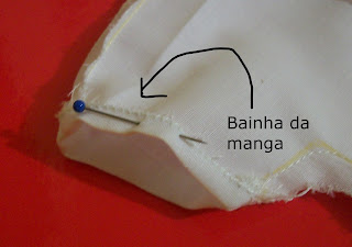 | A bainha é feita nas mangas e na parte inferior da blusa. Como a blusa terá uma gola, não precisamos fazer bainha no decote. |